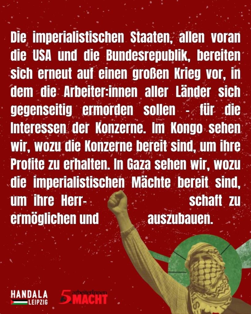 Nach dem friedlichen Ablauf einer Palästina-Demonstration im Leipziger Osten wurden die Teilnehmer:innen der Demo bei ihrer Abreise an der Haltestelle Hauptbahnhof/Wintergartenstr. massiv angegriffen. Einige von ihnen sollen auf der Revolutionären 1. Mai-Demonstration als „Straftäter“ auffällig geworden sein – konkret wurde ihnen zum Teil vorgeworfen, am 1. Mai die Transparente zu weit nach oben gehalten zu haben. Grund genug für die Behörden, auf martialische Art und Weise die Straßenbahn zu umstellen und auf die in der Straßenbahn zusammengequetschten Jugendlichen einzudreschen. Bei stickiger Luft und mit kaum Bewegungsraum wurden sie dort teils bis zu fünf Stunden festgehalten. Bei einer derartig massiven Gewaltanwendung ist von Glück zu sprechen, dass „nur“ zwei Personen ihr Bewusstsein verloren haben.