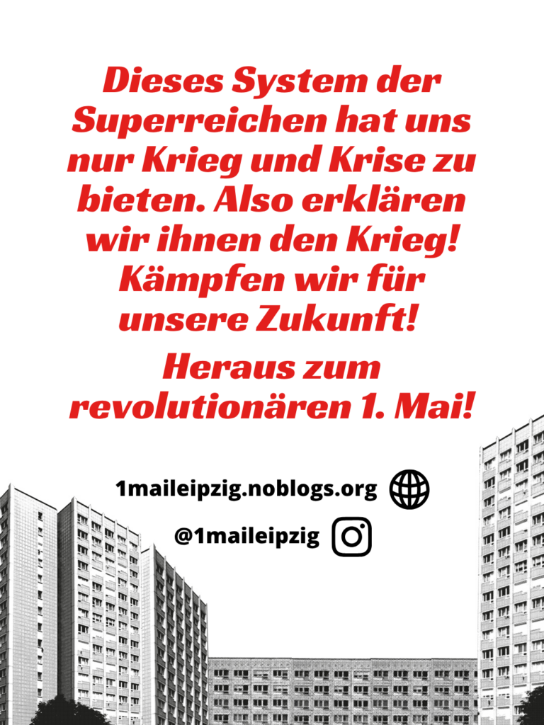 Dieses System der Superreichen hat uns nur Krieg und Krise zu bieten. Also erklären wir ihnen den Krieg! Kämpfen wir für unsere Zukunft! Heraus zum revolutionären 1. Mai!